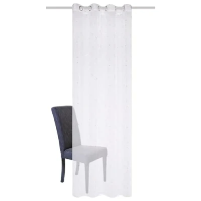 Eyelet curtain Amour for curtain rods (not included) Contents: one (1) ready-made scarf per pack Transparent voile, heart motif printed with silver foil Colour: silver. Dimensions: 245 x 140 cm (height x width). Fabric dimensions – your decorative width may vary Material: 100 polyester. Care: 30 °C gentle cycle, iron inside out