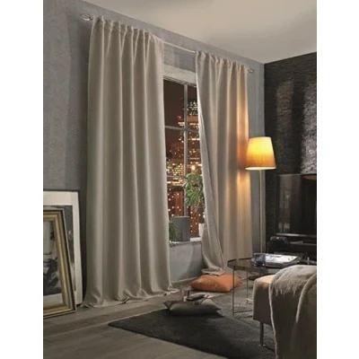 Acoustic scarf with thermal fabric and blackout function, in plain colours. Protection from noise, heat, cold and draughts. Saves energy costs. Almost a blackout fabric Hanging by multifunctional band/combination tape, this allows the curtain to be hung on your curtain rod by concealed back-stitched loops or optionally by means of curtain gliders in your curtain rail (gliders not included). Dimensions: 245 x 135 cm (height x width). Colour: natural Material: 100 % polyester. Care: 30 °C gentle cycle. Do not iron hot