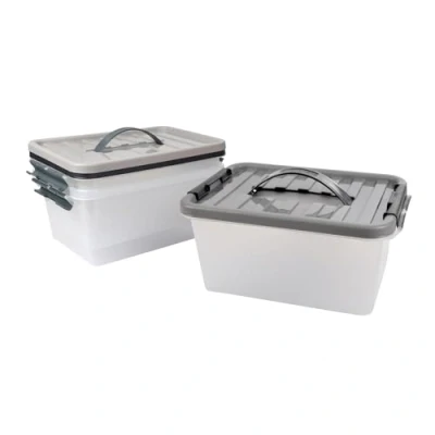 Includes: Clip Box with Plastic Handle 14L 40 x 29 x H18 cm Assorted Taupe Black Grey Clip box with plastic handle: ideal for organized storage and safe transport of various items CLIP CLOSURE - Ensures a secure closure to keep your items in place without risk of losing them CONVENIENT HANDLE - Makes it easy to transport the box from one place to another with ease and comfort VERSATILE - Ideal for storing toys, office supplies, tools, DIY accessories and much more