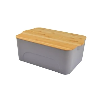 Homéa, Plastic Box with Bamboo Lid 5L 28X18Xh.10.5Cm Taupe