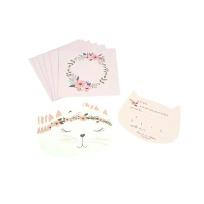 Homéa, Set of 6 Invitations+Envelopes in Boho Cat Paper