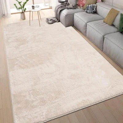homeart Area Rugs Soft, Short Pile Monochrome Carpets Anti Slip Backing, Machine Washable, Modern Fluffy for Living Room, Bedroom, Kitchen, Enterance Cream, 160x230 cm