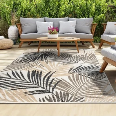 homeart Outdoor Rug Easy Clean, Durable, Stain Resistant, Weather & UV Resistant Indoor Rugs for Porch, Deck, Balcony, Garden, Picnic and Patio Palm Black, Beige 80x150cm