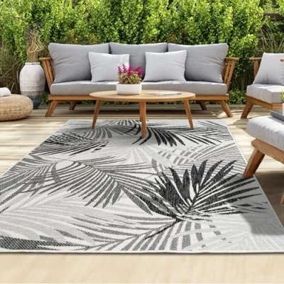 homeart Outdoor Rug Easy Clean, Durable, Stain Resistant, Weather & UV Resistant Indoor Rugs for Porch, Deck, Balcony, Garden, Picnic and Patio Palm Black, Grey 80x150cm