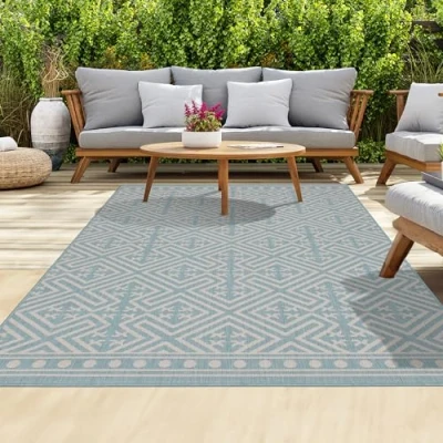 homeart Outdoor Rugs Easy Cleaning Indoor & Area for Porch, Deck, Balcony, Garden, Picnic, Kitchen, Hallway UV Weather Resistant Large Patio Rug Mats Aqua Cream, 120 x 170 cm