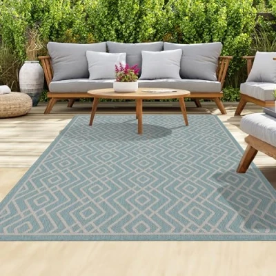 homeart Outdoor Rugs Easy Cleaning Indoor & Area for Porch, Deck, Balcony, Garden, Picnic, Kitchen, Hallway UV Weather Resistant Large Patio Rug Mats Aqua Cream, 180 x 270 cm