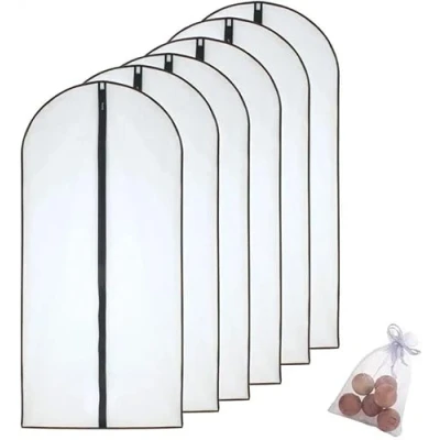 HomeClean Moth Proof Garment Bags 60 x 100cm(24'' 40'') Black Side Breathable Clear Full Zipper with Cedar Balls for Clothes Storage (Pack of 6)