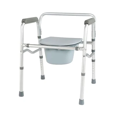 Portable & space-saving – folding aluminium frame makes this commode toilet chair easy to store, transport and reposition, ideal for small homes, travel or hospital use. Dual-use flexibility – functions as a standalone commode with removable bucket or as a toilet surround frame for added support over existing toilets. Adjustable comfort – height-adjustable seat (46–56 cm) ensures a safe, tailored fit for elderly users, disabled individuals, or those recovering from surgery. Secure & hygienic – non-slip rubber feet enhance stability on tiled or wet floors, while the clip-on toilet seat and removable bucket simplify cleaning. Lightweight but supportive – robust aluminium design is easy to carry yet offers reliable toileting support, reducing reliance on fixed grab rails or carers.