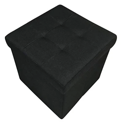 HomeHarmony Folding Storage Ottoman Seat, Stool, Toy Box Linen Look (Black Medium)