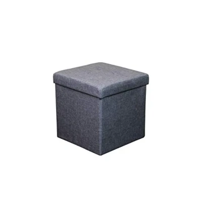 HomeHarmony Folding Storage Ottoman Seat, Stool, Toy Box Linen Look (Light Grey Medium)