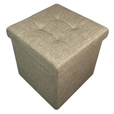 HomeHarmony Folding Storage Ottoman Seat, Stool, Toy Box Linen Look (Natural Medium)