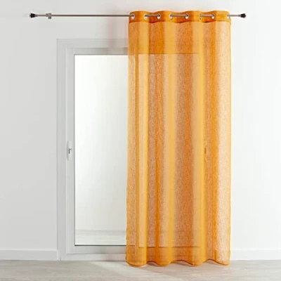 Traditional plain linen effect net curtain. This plain linen net curtain will fit seamlessly into your interior decoration. Ideal for all your rooms in the house. It can be a bedroom window curtain, a living room curtain, or a kitchen curtain. DIMENSIONS - This sheer curtain measures 140cm wide by 240cm drop. Colour: This linen curtain is ochre yellow. Material: The composition of this net curtain is 100% polyester. Finish: This net curtain consists of 8 round eyelets in silver colour with an inner diameter of 4 cm. Best value for money: a quality fabric with premium finishes for a cheap curtain