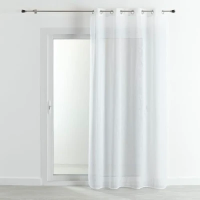 Traditional plain linen effect net curtain. This plain linen net curtain will fit seamlessly into your interior decoration. Ideal for all your rooms in the house. It can be a bedroom window curtain, a living room curtain, or a kitchen curtain. DIMENSIONS - This large sheer curtain measures 290 cm wide by 240 cm drop. Color: This linen curtain is white color. Material: The composition of this screen curtain is 100% polyester. Finish : This net curtain consists of 16 round silver eyelets with an inner diameter of 4 cm Dimming: This sheer window will let light through while protecting you from outside eyes. Best value for money: a quality fabric with premium finishes for a cheap curtain