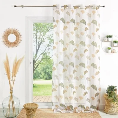 Ginkgo Sheer Curtain - This decorative sheer curtain dresses up your windows with an elegant ginkgo leaf pattern, adding a vegetal and delicate touch to your decor Subtle sieving: Thanks to its translucent fabric, this curtain subtly dims daylight, creating a serene and warm atmosphere in your home EASY INSTALLATION - Equipped with 8 round eyelets in matte silver finish, this sheer curtain fits easily on any standard rod, providing a smooth and aesthetic fall SIMPLE CARE - Made of 100% polyester, this sheer curtain is easy to maintain, allowing you to enjoy its beauty and practicality in everyday life Available colors: Available in terracotta and khaki, this sheer curtain blends easily with various decor styles, from modern to classic