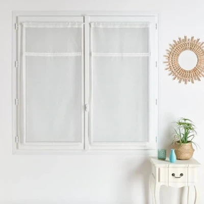 Sheer curtains with macrame ribbon, perfect for a touch of bohemian refinement in your living room or bedroom. Available in off-white colours for a light and soothing ambience Made from 100% polyester cheesecloth, these curtains ensure durability and ease of maintenance. Macrame ribbon up adds a handcrafted and decorative detail Ready to hang with rod pocket hem, easy to install. Dimensions 2 x 60 x 120 cm, ideal for dressing small and large windows Hemmed sides and bottom for a neat and durable finish, seamlessly integrating with modern, Scandinavian or bohemian decor Creates a bright and elegant ambience, transforming your windows into real decorative elements. Off-white colour matches with various color palettes
