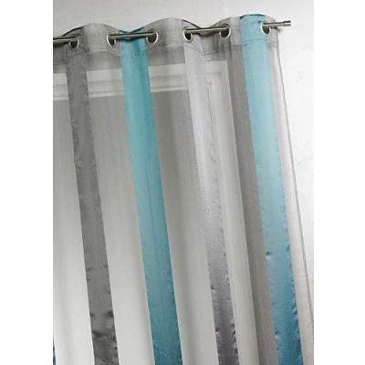 Sheer curtains for windows, this two-tone vertical stripe organza design adds a graphic and modern touch to your home Made of 100% polyester, this sheer curtain is lightweight and flowing, providing a dimming transparency ideal for filtering light while preserving privacy Easy installation thanks to the round silver eyelets, the ready-made curtain fits all standard rods and blends in with various decorative styles Easy care and machine washable at 30 °C, this net curtain retains its lightness and bright colours even after several washes Each sheer curtain is carefully packaged and sold individually, ready to elevate your living space with a touch of modern and elegant