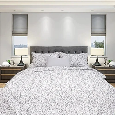 Homemania Peonies Bedding Double, Fitted Sheet, Pillowcase, Light Blue, White Cotton, 240...