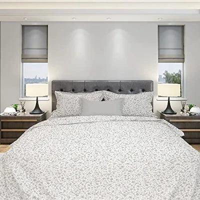 Homemania Mandy Bedding Single with Fitted, Sheet, Pillowcase, White, Grey, Cotton, 150...