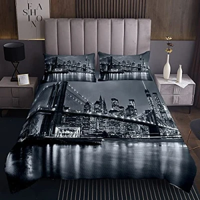 Homemissing Brooklyn Bridge Quilted Bedspread Kids New York City Black and White Coverlet Famous Town Image Bedding Cover 3Pcs Double Size