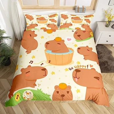 Homemissing Cartoon Capybara Bedding Set Brown Comforter Cover Funny Cute Duvet for Kids Boys Girls Floral Capybaras Bedspread Decor Durable Quilt Single