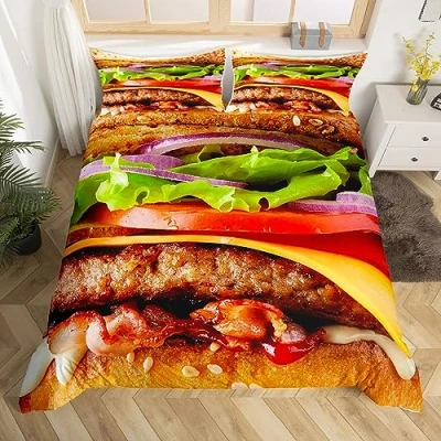 Homemissing Hamburgers Comforter Cover Giant Funny Food Bedding Set for Kids Toddler Novelty Weird Duvet Realistic Bedspread Decor Quilt Single