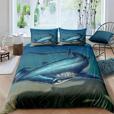 Homemissing Shark Comforter Cover Hammerhead Bedding Set for Boys Girls Ocean Marine Duvet Underwater Animal Bedspread Single Size 2Pcs