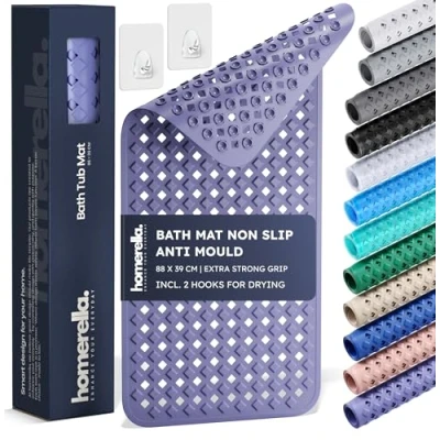 homerella® Bath Mat Non Slip Anti Mould 88x39cm, Machine Washable& BPA free, Shower Mould, for Inside Tub, Mats Shower,