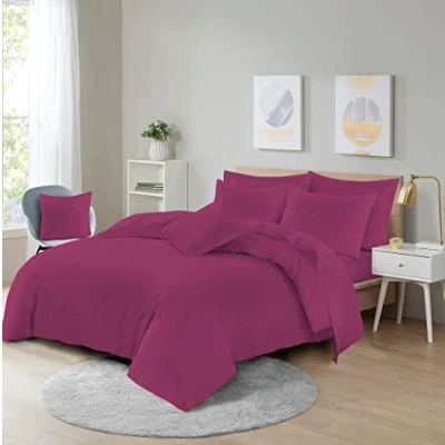 HOMES LINEN Easy Care Poly cotton Plain Dyed Duvet Cover Set (Fuchsia, King)
