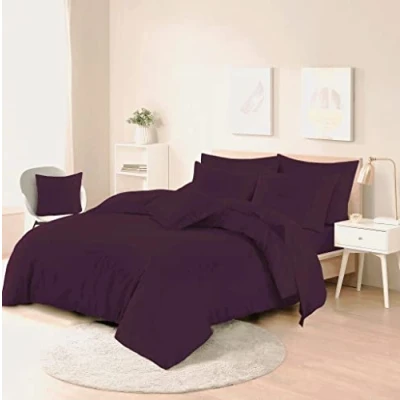 HOMES LINEN Easy Care Poly cotton Plain Dyed Duvet Cover Set (Plum, Super King)