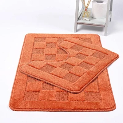 HOMES LINEN Squares 2 Piece Bath Mat & Pedestal Set Non Slip Extra Absorbent Square Bathroom Toilet Rug Mats (Terracotta)