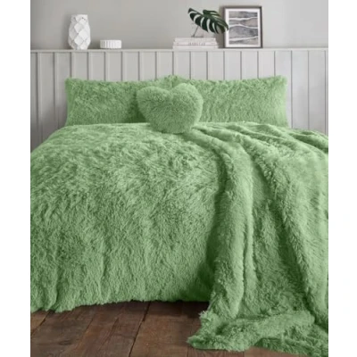HOMES LINEN Teddy Bear Fleece Long Fur Cuddles Alaska Luxury Duvet Cover Set Warm Cosy Soft Bedding (Sage Green, Double)