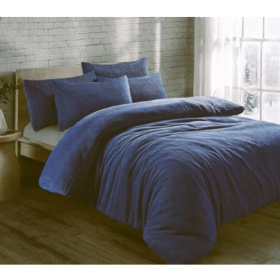 HOMES LINEN Teddy Bear Fleece Thermal Warm Cosy Soft Fur Duvet Cover Set With Pillow Cases (Navy, Super King)