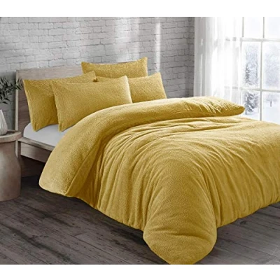 HOMES LINEN Teddy Bear Fleece Thermal Warm Cosy Soft Fur Duvet Cover Set With Pillow Cases (Ochre, Super King)