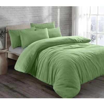 HOMES LINEN Teddy Bear Fleece Thermal Warm Cosy Soft Fur Duvet Cover Set With Pillow Cases (Sage Green, King)