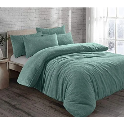 HOMES LINEN Teddy Bear Fleece Thermal Warm Cosy Soft Fur Duvet Cover Set With Pillow Cases (Teal, Super King)