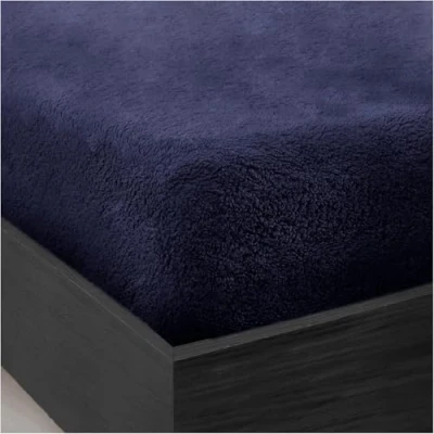 HOMES LINEN Teddy Fitted Sheet Extra Deep 30cm Bed Soft Cosy Warm (Navy, Single)