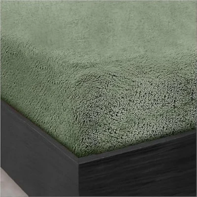 HOMES LINEN Teddy Fitted Sheet Extra Deep 30cm Bed Soft Cosy Warm (Sage Green, King)