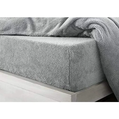 HOMES LINEN Teddy Fitted Sheet Extra Deep 30cm Bed Soft Cosy Warm (Silver, Single)