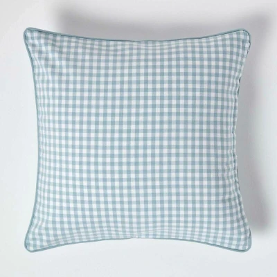 HOMESCAPES 100% Cotton Gingham Check Large Cushion Cover 60 x cm Square 24 Inches Blue White Sofa Pillow Washable