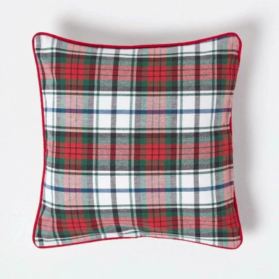 HOMESCAPES 100% Cotton MacDuff Tartan Check Cushion Cover 45 x cm Square 18 Inches Christmas Red Green White sofa Washable