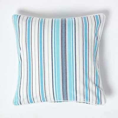 General description These checks and stripes cushion covers in 100% cotton are hand woven with high-quality dyed yarn. Homescapes, as a manufacturer, offers these premium products at a reasonable price, ensuring high-quality soft furnishings for your home. Coordinating soft furnishings and kitchen textiles are available in these designs, and you can also purchase fabrics by the meter to create your own soft furnishings. Technical specifications Brand: Homescapes Size Available: 45cm x 45cm (18" x 18") Colour: Blue Cover Material: 100% cotton Care Instructions: Machine washable Pack Includes: One cushion cover Other information