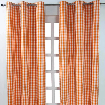ManoManoGeneral description These HOMESCAPES Cotton Orange Block Check Gingham Eyelet Curtains are crafted from 100% yarn dyed cotton woven fabric, providing a rich appearance that surpasses printed curtains. Made in a contemporary ring top or eyelet style, they are suitable for all rooms, including children's rooms, and are surprisingly affordable as Homescapes weaves the fabrics themselves before sewing the curtains. Technical specifications Brand: Homescapes Size: Width 137 cm (54") x Drop 182 cm (72") Colour: Orange Material: 100% yarn dyed cotton woven fabric Care Instructions Dry clean only Cool iron on reverse Other information Pack Includes: One pair of curtains The curtains are not lined; to make them light proof, they should be used in conjunction with a blackout curtain. Coordinating cushions, floor cushions, and fabric by the meter are also available from Homescapes for creating your own soft furnishings.
