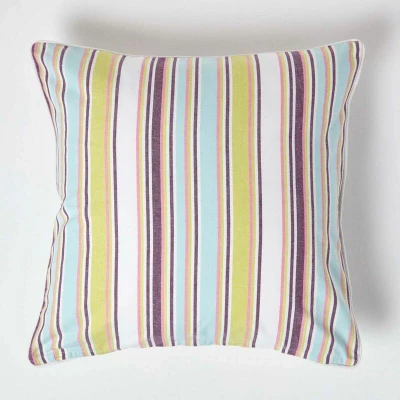 HOMESCAPES 100% Cotton Osaka Stripes Large Cushion Cover 60 x cm Square 24 Inches Green Blue White Purple Sofa Pillow Washable