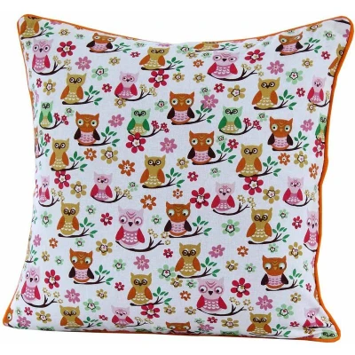 HOMESCAPES 100% Cotton Owl Cushion Cover 30 x cm Square 12 Inches Orange Red White Sofa Pillow Washable