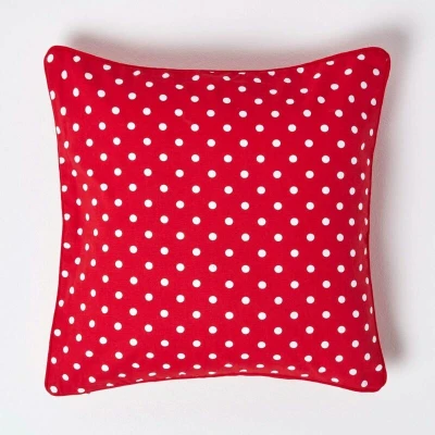 General description Homescapes designer printed cotton cushion covers are available in a large selection of beautiful designs, perfect for enhancing any interior setting and complementing various color schemes. The vibrant red polka dots make this cushion cover an ideal choice for children's rooms and other interior applications. Technical specifications Brand: Homescapes Size: 45 cm x 45 cm (18″ x 18″) Colour: Red Cover Material: 100% cotton Compatibility and accessories Compatible with duck feather cushion pads (sold separately) Coordinating products available, including curtains, throws, and table linen Fabric by the meter available for custom soft furnishings Care Instructions Machine washable