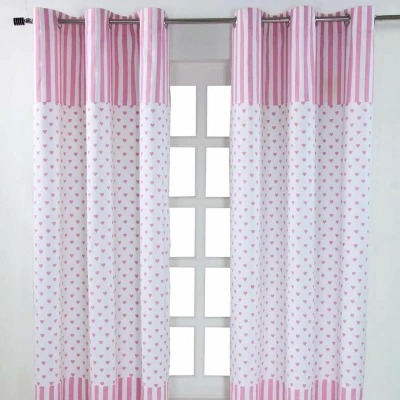 General description These HOMESCAPES Pink Love Hearts Ready Made Eyelet Curtains are designed to add a touch of charm and color to any room. Made from 100% cotton, these modern ring top curtains feature a delightful designer print and are available in a lovely pink color. They are perfect for brightening up spaces, especially children's rooms, and can be coordinated with various interior settings. Technical specifications Brand: Homescapes Size: Width 137 cm (54") x Drop 228 cm (90") Material: 100% cotton Care Instructions: Dry clean only Ironing: Cool iron on reverse Other information Pack Includes: One pair of curtains These curtains are not lined and require a blackout curtain for lightproofing. Coordinating cushions, floor cushions, and fabric by the meter are also available from Homescapes.