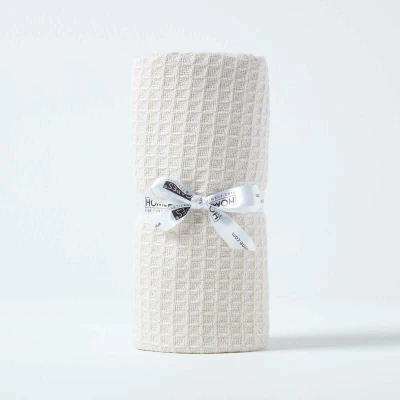 HOMESCAPES 100% Organic Cotton Waffle Throw Natural 125 x 150 cm Super Soft Combed