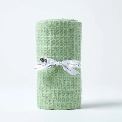 HOMESCAPES 100% Organic Cotton Waffle Throw Sage Green 125 x 150 cm Super Soft Combed