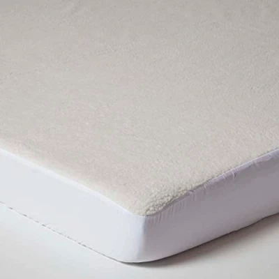 Thermal fleece under blanket mattress protector with luxury 230 GSM faux wool top. Size: Euro Double 140 x 200 cm. Fully Elasticated Skirt. Skirt Depth: 30 cm. Thick and cosy underblanket mattress topper that is ideal for cold evenings and for those who feel the cold –keeps you warm all night through and helps to reduce household energy consumption. OEKO-TEX certified, this protector has been expertly made and is free from toxic chemicals. Machine washable. Adding a layer of comfort to your sleep, the super thick 230 GSM faux wool Sherpa style topper is much thicker than standard mattress toppers and will remain cosy and fluffy even with regular use. The 30 cm deep, fully elasticated fitted fabric skirt keeps the topper securely in place even as you move in sleep - resulting in a well-rested, uninterrupted night’s rest. Part of Homescapes' bedding collection, duvet and pillow protectors are also available. Established in 2000, Homescapes offer an exclusive range of luxury, affordable 100% cotton bed linen.