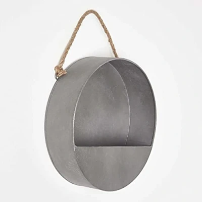 Specifications: Brand: Homescapes Size: Medium (30cm round) Colour: Grey Material: Zinc, jute Care Instructions: Keep out of direct water Homescapes exclusive collection of colourful and functional garden ornaments and accessories. Handcrafted from top quality zinc and jute, this collection of stylish planters will look great anywhere in the home or garden. For an on-trend look, install in the bathroom and place an artificial or low-maintenance succulent inside. Fixings and plant not included. Round wall planter is available in 2 sizes. Both decorative and functional, the garden range also includes our variety of outdoor mirrors in a variety of colours, woods and patterns. Homescapes outdoor mirrors contain shutters, perfect for protecting the mirror in all weathers. Other outdoor items include rustic cast iron accessories, perfect for any lover of the outdoors. Traditional style doorbells are available in a range of designs, as well as house numbers, wall hooks, boot scrapers and